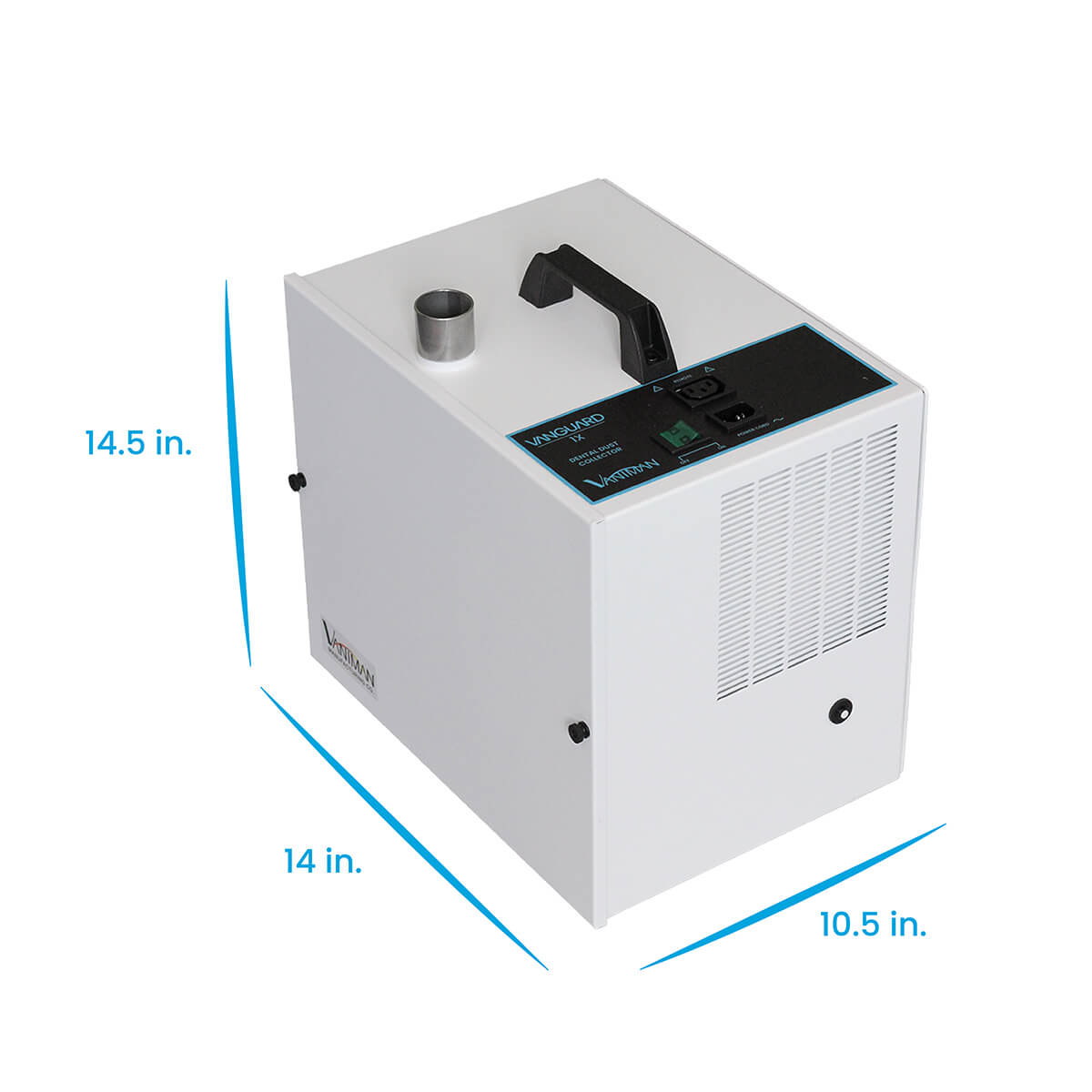 Le Vanguard 1X est un dépoussiéreur dentaire monoposte haut de gamme, conçu pour collecter la poussière et les particules aux postes de travail dentaires. Son coût d'utilisation est faible et il nécessite très peu d'entretien ; sa durée de vie moyenne dépasse 20 ans. Tous les appareils sont assemblés à la main aux États-Unis, dans notre usine du sud de la Californie.